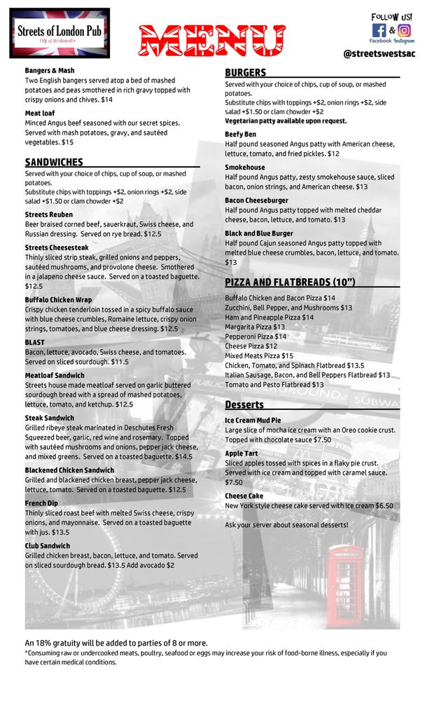 Introducing Streets of London Pub, a hidden gem located in West Sacramento offering a cozy and inviting atmosphere. This pub is a haven for foodies and beer enthusiasts alike, with a great selection of beers and delicious dishes.